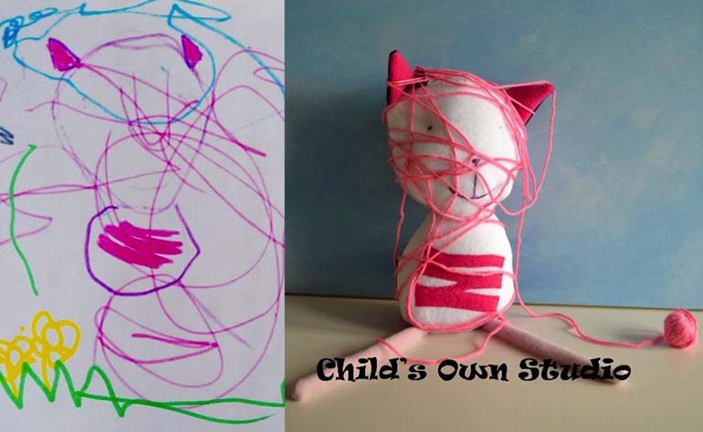Young Torbin was recently diagnosed with leukemia. He and his sister Evelyn worked on a drawing so that I could make a strength toy for him. Unfortunately, Pink Cat got tangled up in a bit of yarn.